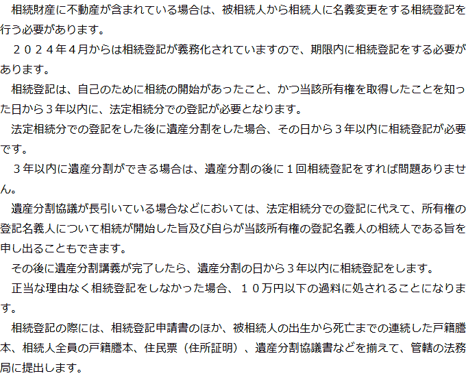 Q相続人調査と相続財産調査では何をする必要がありますか?AQ遺産分割では何が必要ですか?AQ相続登記はどのような場合に必要ですか?AQ相続税申告はどのような場合に必要ですか?A Q&A(目次)Q&Aトップ相続手続きの必要事項に関するQ&A 受付時間 平日 9時~21時、土日祝 9時~18時 夜間・土日祝の相談も対応します (要予約) 所在地 〒104-0061 東京都中央区銀座1-19-14GINZA ONE BUILDING 8F (旧表記:ホーメスト木箱銀座ビル8F) 0120-2403-39 お問合せ・アクセス・地図