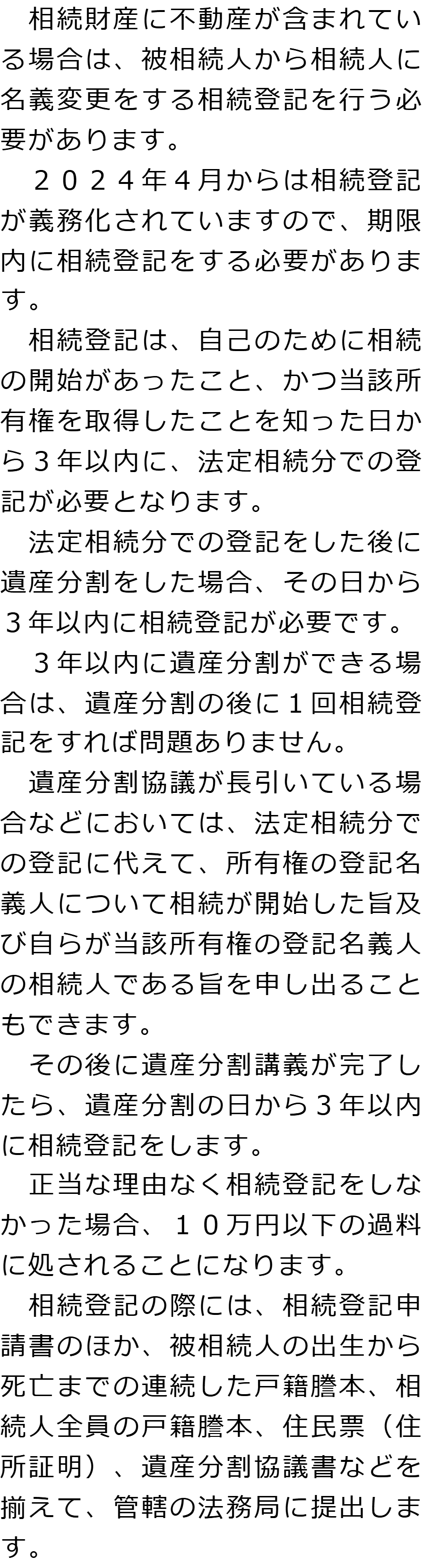 Q相続登記はどのような場合に必要ですか?AQ相続税申告はどのような場合に必要ですか?A Q&A(目次)Q&Aトップ相続手続きの必要事項に関するQ&A 受付時間 平日 9時~21時、土日祝 9時~18時 夜間・土日祝の相談も対応します (要予約) 所在地 〒104-0061 東京都中央区銀座1-19-14GINZA ONE BUILDING 8F (旧表記:ホーメスト木箱銀座ビル8F) 0120-2403-39 お問合せ・アクセス・地図