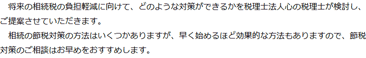 トップ業務内容節税対策 階層構造▼ 業務内容(目次) 節税対策 業務内容(目次)業務内容トップ行政書士法人心の業務内容遺言遺産整理相続人調査相続財産調査遺産分割協議書の作成預金・貯金の解約・名義変更証券口座の解約・名義変更自動車の名義変更心グループのその他の業務内容家族信託・民事信託節税対策事業承継遺言の検認相続放棄限定承認遺産分割遺留分侵害額請求相続登記相続税申告相続税調査 受付時間 平日 9時~21時、土日祝 9時~18時 夜間・土日祝の相談も対応します (要予約) 所在地 〒104-0061 東京都中央区銀座1-19-14GINZA ONE BUILDING 8F (旧表記:ホーメスト木箱銀座ビル8F) 0120-2403-39 お問合せ・アクセス・地図