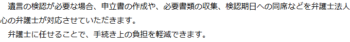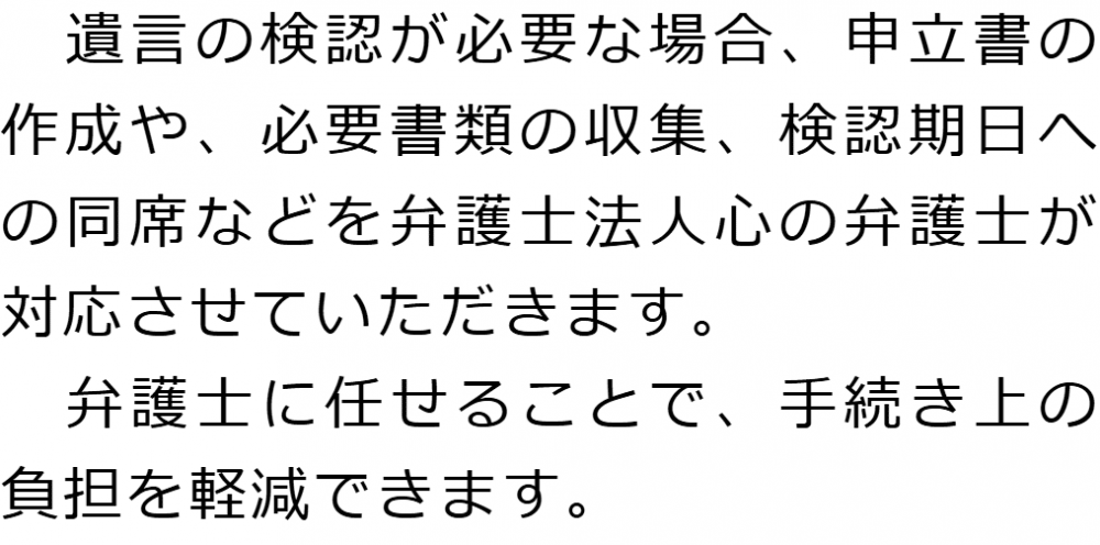 トップ業務内容遺言の検認 階層構造▼ 業務内容(目次) 遺言の検認 業務内容(目次)業務内容トップ行政書士法人心の業務内容遺言遺産整理相続人調査相続財産調査遺産分割協議書の作成預金・貯金の解約・名義変更証券口座の解約・名義変更自動車の名義変更心グループのその他の業務内容家族信託・民事信託節税対策事業承継遺言の検認相続放棄限定承認遺産分割遺留分侵害額請求相続登記相続税申告相続税調査 受付時間 平日 9時~21時、土日祝 9時~18時 夜間・土日祝の相談も対応します (要予約) 所在地 〒104-0061 東京都中央区銀座1-19-14GINZA ONE BUILDING 8F (旧表記:ホーメスト木箱銀座ビル8F) 0120-2403-39 お問合せ・アクセス・地図