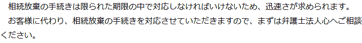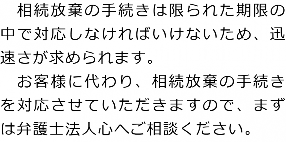 トップ業務内容相続放棄 階層構造▼ 業務内容(目次) 相続放棄 業務内容(目次)業務内容トップ行政書士法人心の業務内容遺言遺産整理相続人調査相続財産調査遺産分割協議書の作成預金・貯金の解約・名義変更証券口座の解約・名義変更自動車の名義変更心グループのその他の業務内容家族信託・民事信託節税対策事業承継遺言の検認相続放棄限定承認遺産分割遺留分侵害額請求相続登記相続税申告相続税調査 受付時間 平日 9時~21時、土日祝 9時~18時 夜間・土日祝の相談も対応します (要予約) 所在地 〒104-0061 東京都中央区銀座1-19-14GINZA ONE BUILDING 8F (旧表記:ホーメスト木箱銀座ビル8F) 0120-2403-39 お問合せ・アクセス・地図